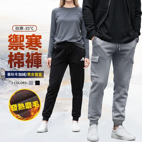 保暖刷毛 男女共款 熱銷搶購 不咬膚束口棉刷毛褲 兩色
