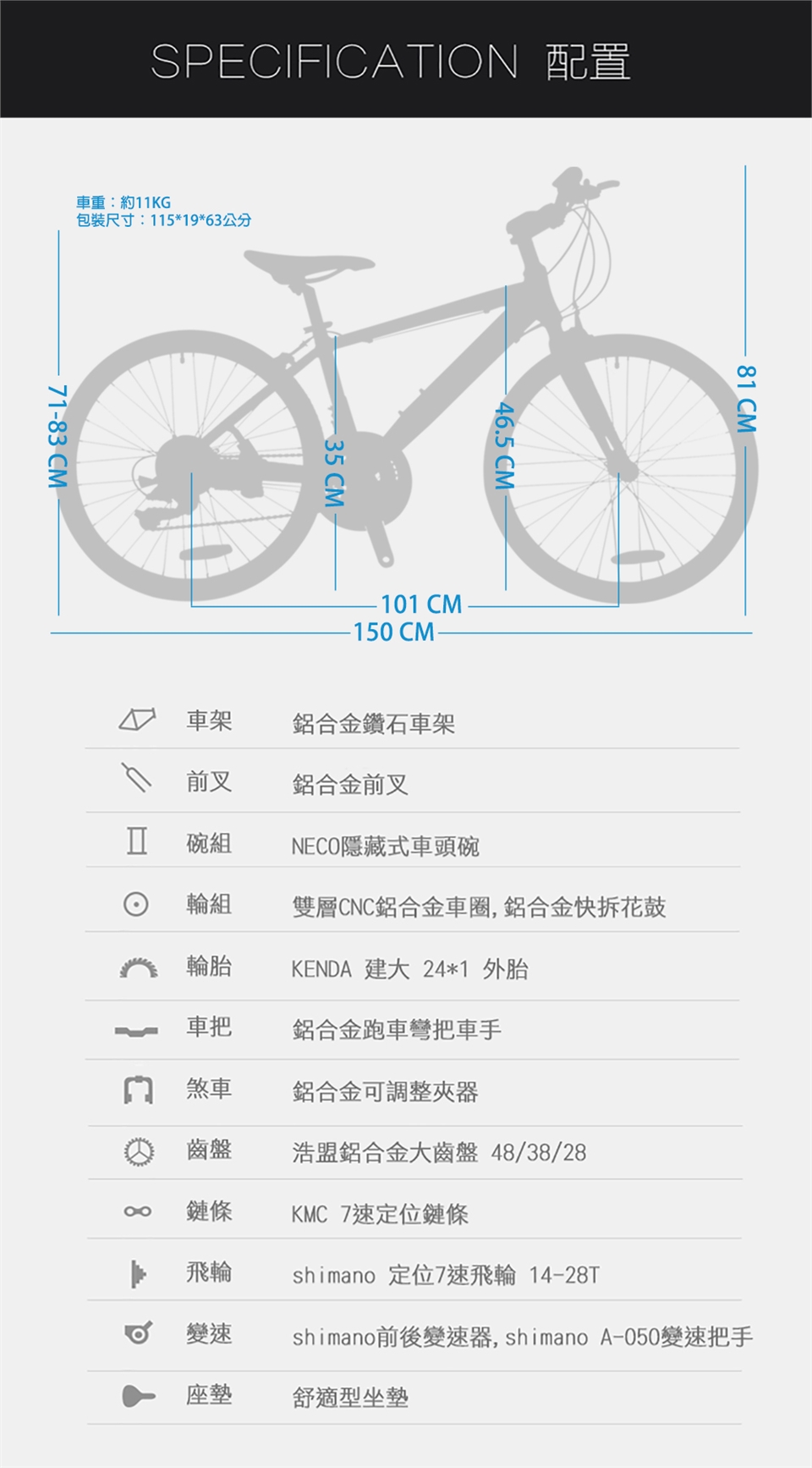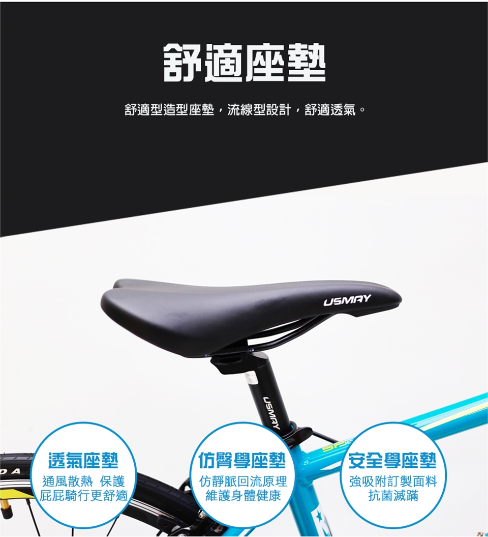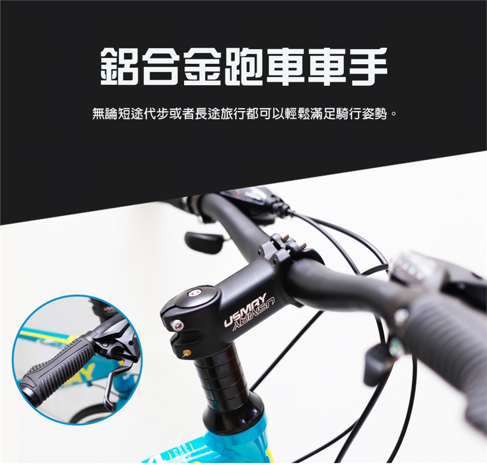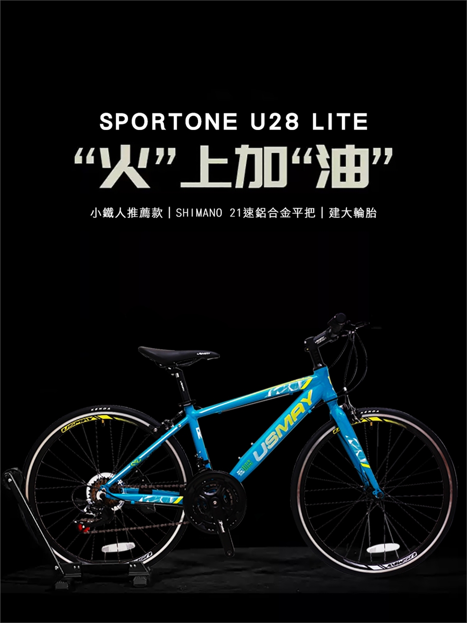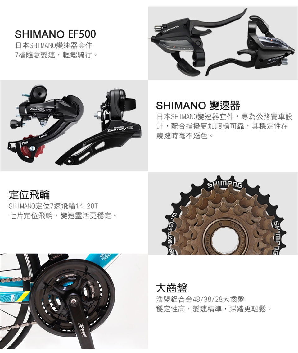 是不折不扣的公路車縮小版,採用SHIMANO 21速傳動系統