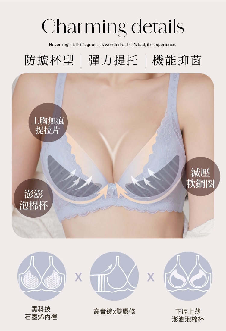 【Clany可蘭霓】夢幻花語 抗菌石墨烯集中包覆軟鋼圈 BCD 內衣