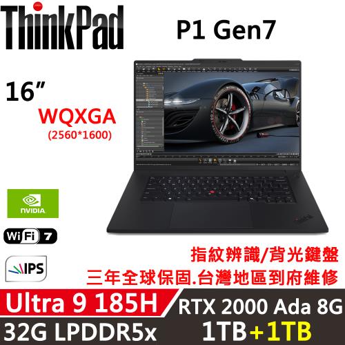 (規格升級)Lenovo聯想 Thinkpad P1 Gen7 16吋 AI行動工作站(Ultra 9 185H/32G D5/1TB+1TB)