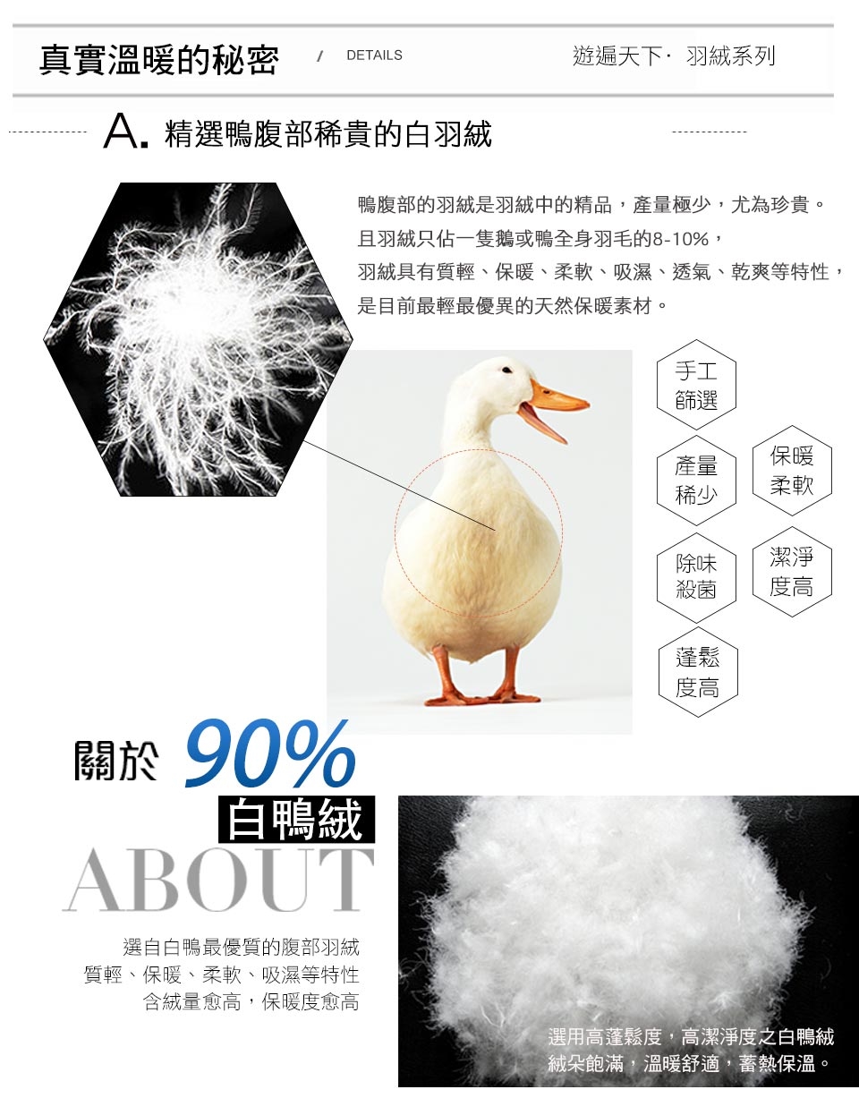 遊遍天下嚴選台灣抗磨擦、抗撕裂及超透氣等功能性布料,特選台灣高規格90%羽絨,極緻輕暖;