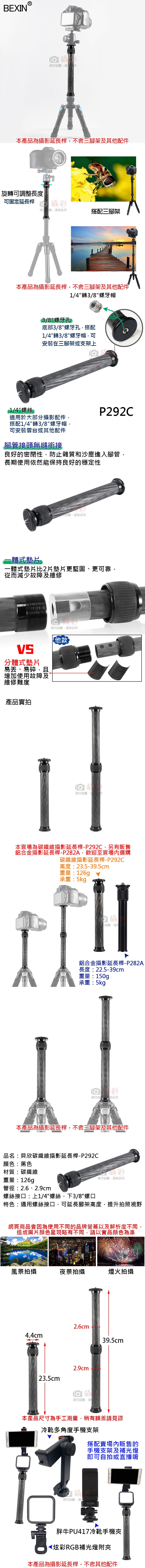 ★本賣場為碳纖維攝影延長桿-P292C,另有鋁合金攝影延長桿-P282A,歡迎至賣場內選購★