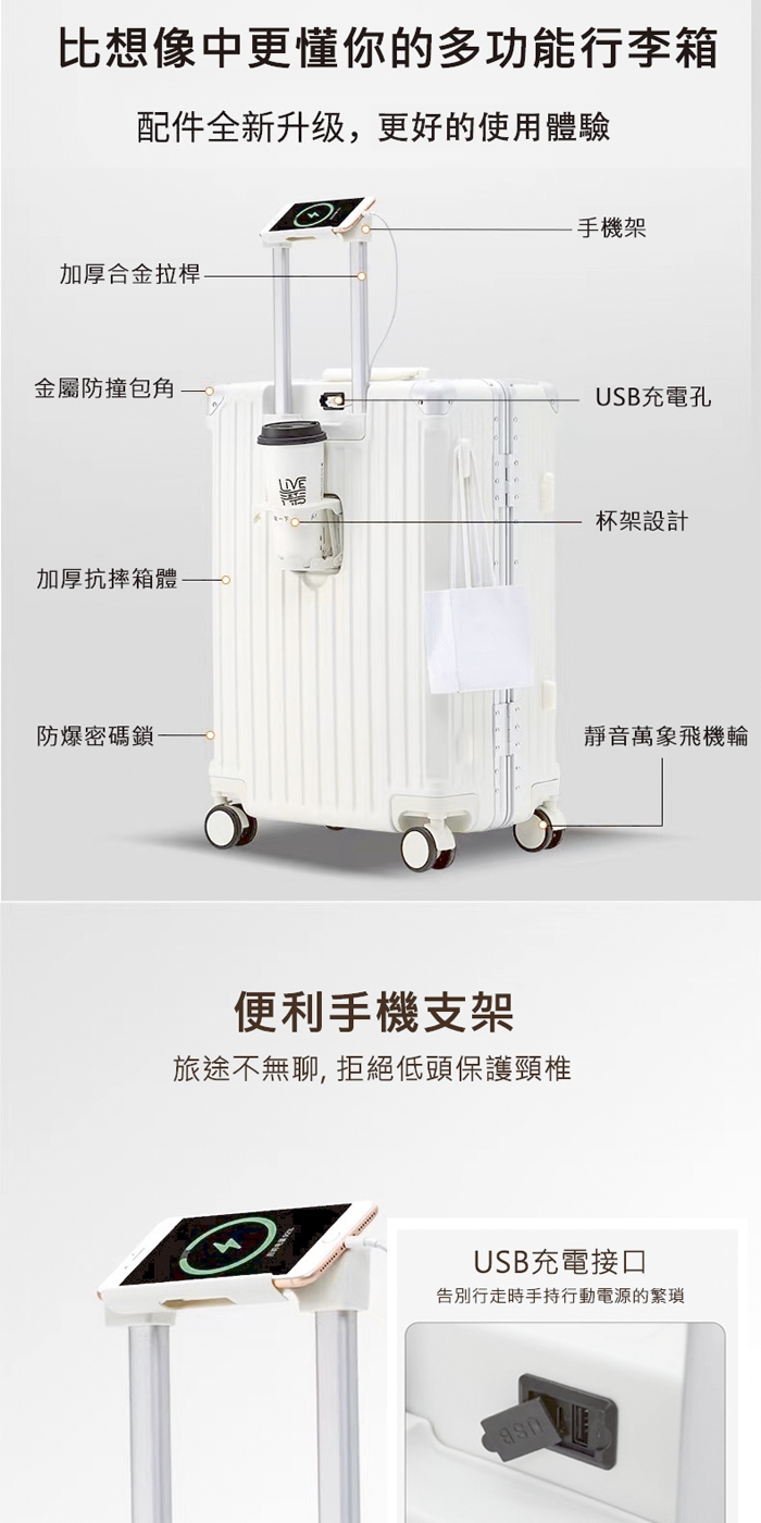 ★ ABS+PC三層結構耐磨箱面+防撞護角