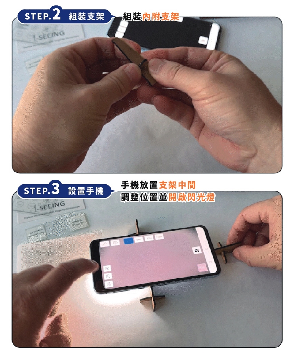 產品內容:顯微鏡、尺規、對焦支架
