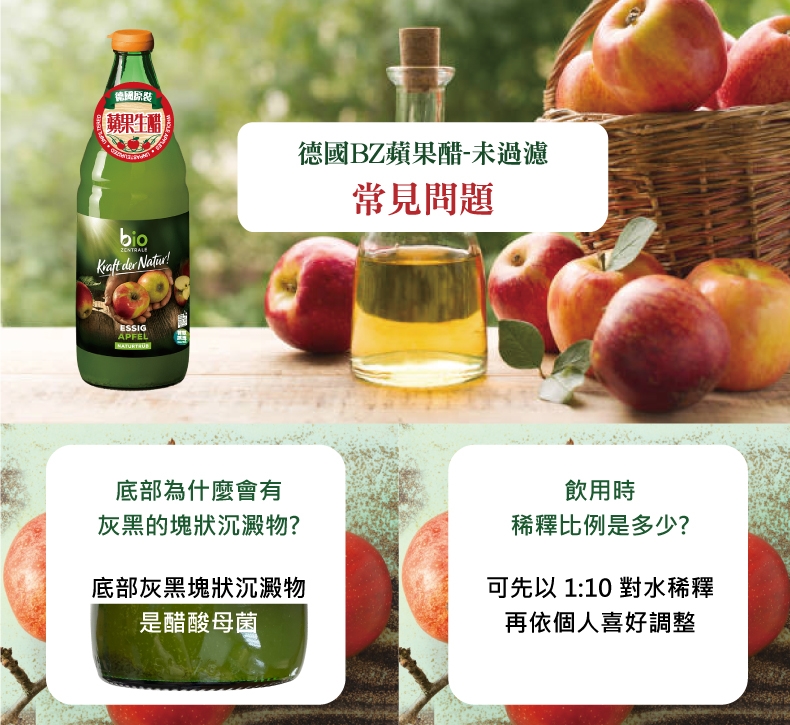 ※ 若有懸浮混濁或沉澱物,係留存的醋酸母菌屬正常現象,食用前請先搖勻。