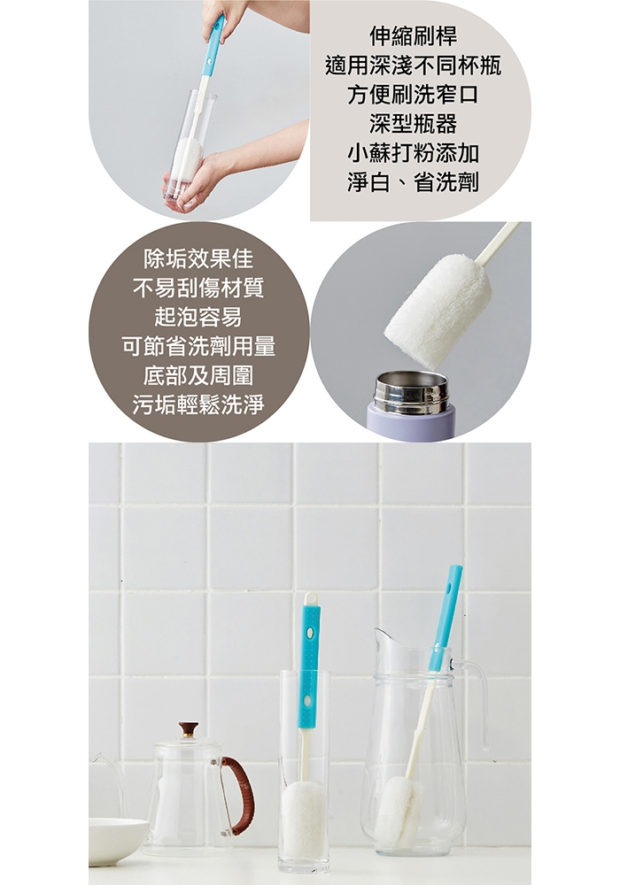 ◆ 伸縮刷桿,適合深淺不同的杯瓶