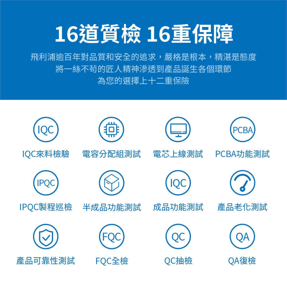 16道檢測16重保障,飛利浦百年國際品牌匠人精神,品質追求最嚴謹