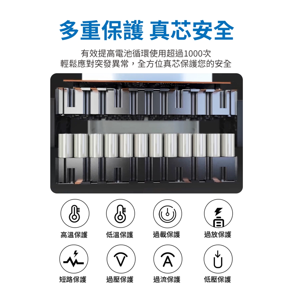 多種保護真芯安全,有效提高電池𢕀環使用超過2000次