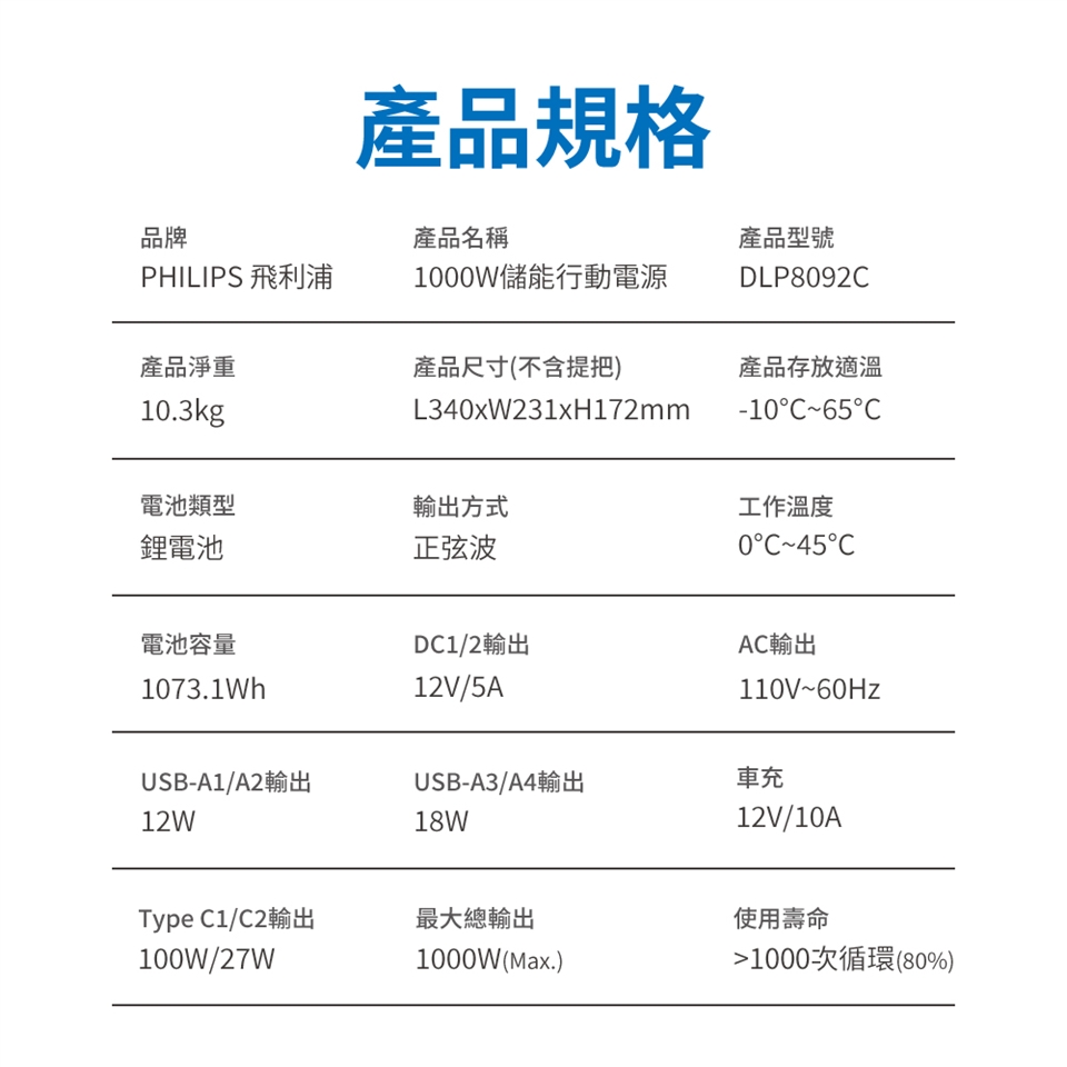 最大總輸出:AC+DC=1000W(Max.)