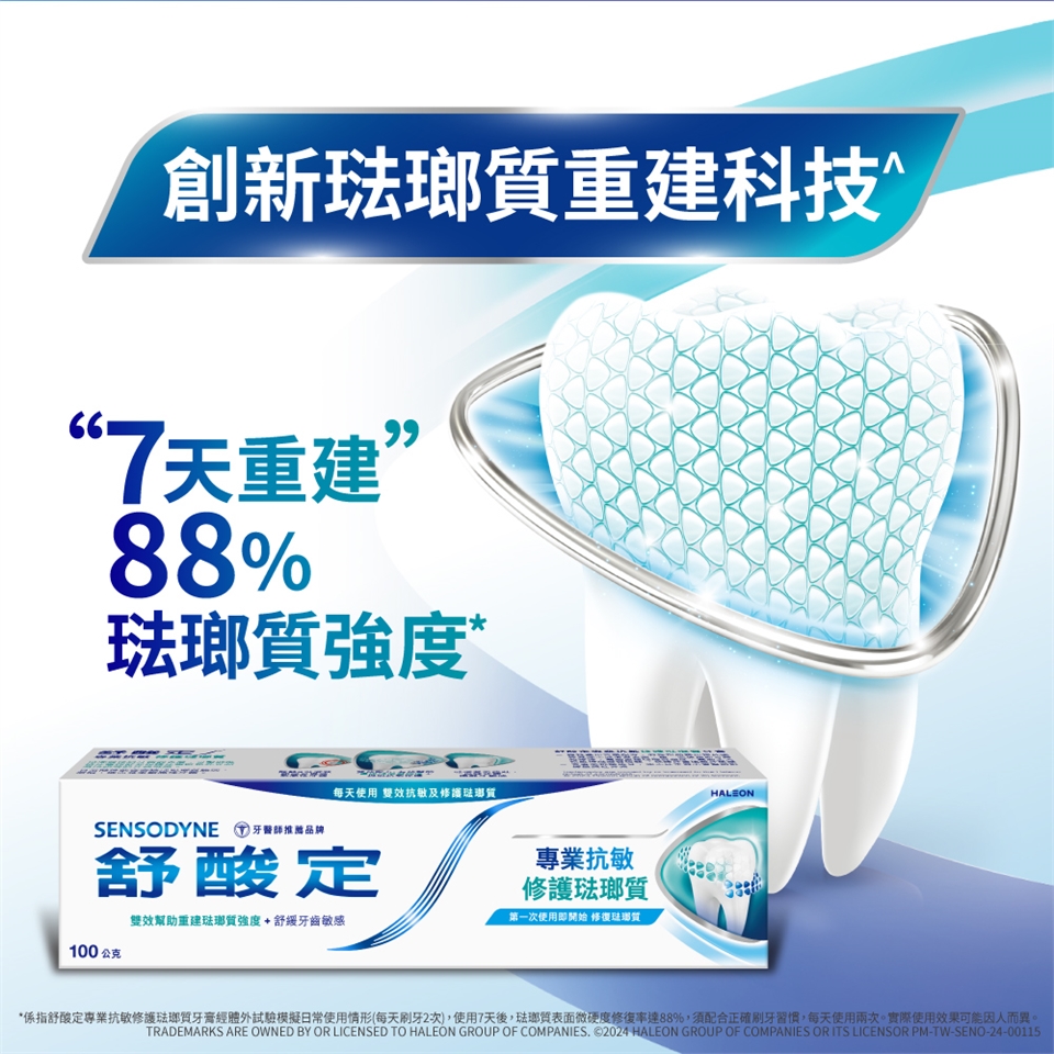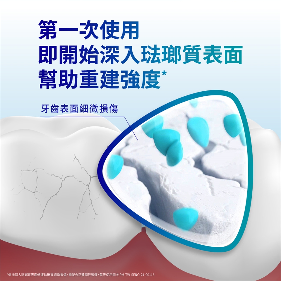 • 使用注意事項:敏感性牙齒可能代表有潛在的牙齒問題,需及時照護,若敏感問題持續或惡化,請諮詢牙醫師。若產生刺激反應,請停止使用產品。若口腔或面部有腫脹現象,請停止使用產品,並立即諮詢您的牙醫或醫生。不適用於12歲以下兒童,或請諮詢牙醫或醫師。請儲存於兒童無法取得之處。產品如未完整密封請勿使用。使用後請關緊管蓋保持產品乾燥。