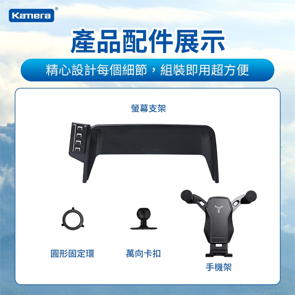 - 手機架位置設計符合最佳視覺處,不遮擋車內按鈕,方便操作與觀看。