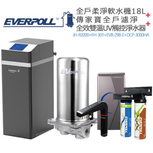 EVERPOLL 全戶柔淨軟水機18L+全戶濾淨+全效雙溫UV觸控淨水器(JH-R2000+FH-301+EVB-298-E+DCP-3000HA)