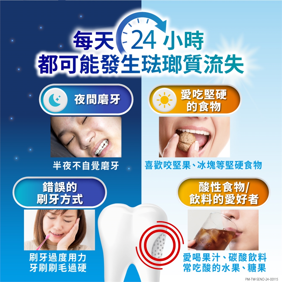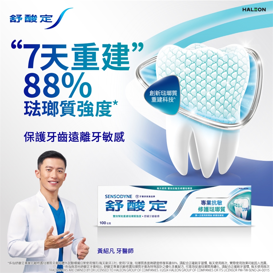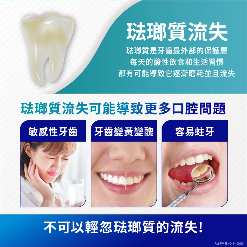 • 使用注意事項:敏感性牙齒可能代表有潛在的牙齒問題,需及時照護,若敏感問題持續或惡化,請諮詢牙醫師。若產生刺激反應,請停止使用產品。若口腔或面部有腫脹現象,請停止使用產品,並立即諮詢您的牙醫或醫生。不適用於12歲以下兒童,或請諮詢牙醫或醫師。請儲存於兒童無法取得之處。產品如未完整密封請勿使用。使用後請關緊管蓋保持產品乾燥。