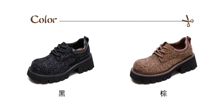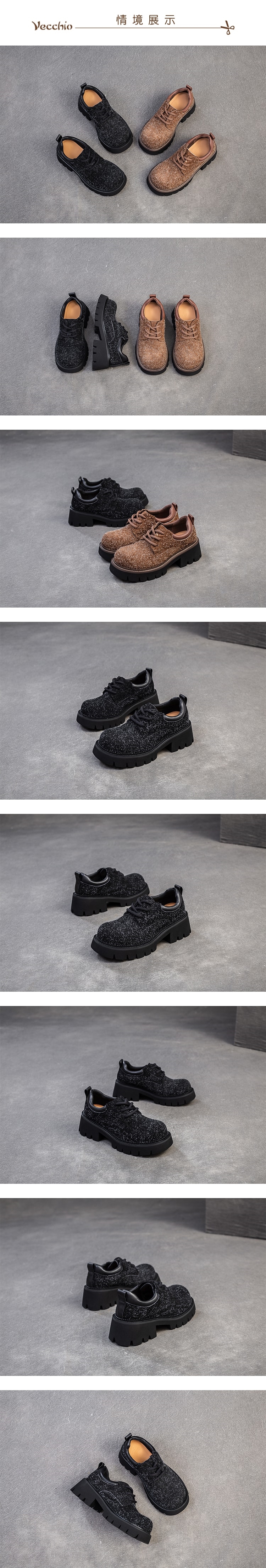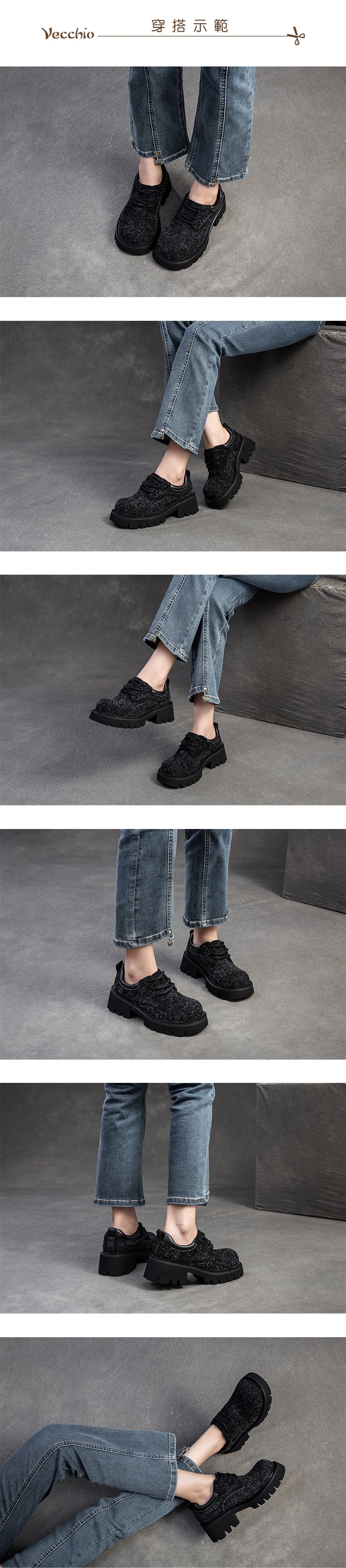 【VECCHIO】全真皮雪花絨牛皮繫帶粗跟休閒鞋/全真皮雪花絨牛皮經典復古繫帶粗跟休閒鞋 女鞋 黑