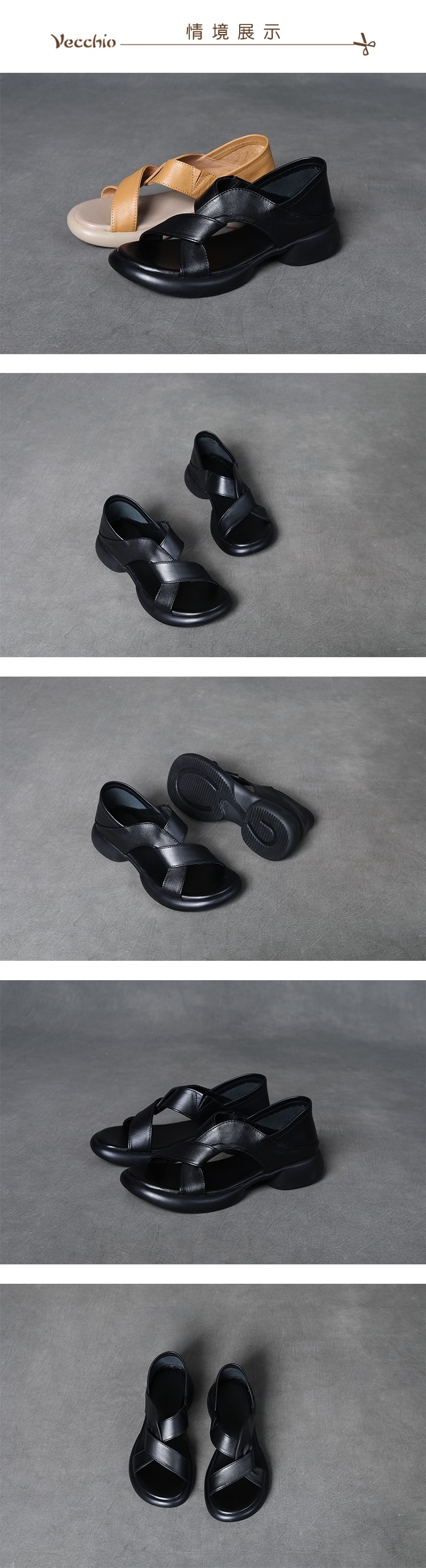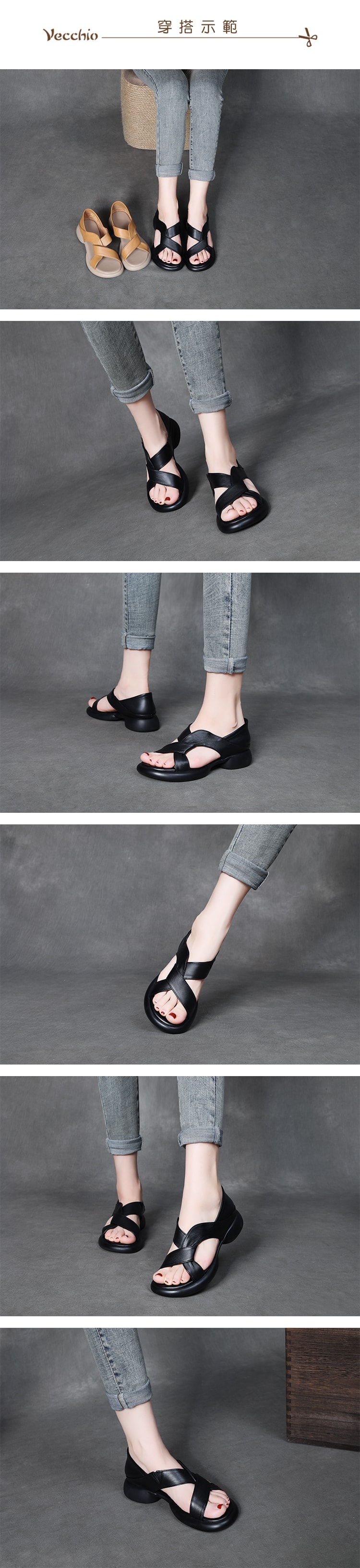 【VECCHIO】真皮兩穿曲線縷空厚底涼鞋拖鞋/真皮頭層牛皮兩穿法設計曲線縷空厚底涼鞋 拖鞋 女鞋 黑