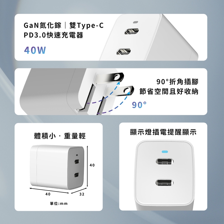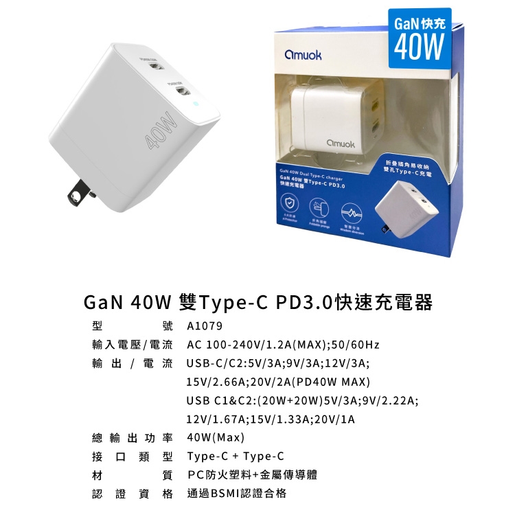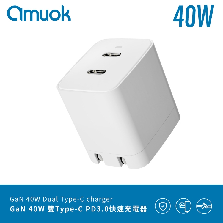 amuok 40W GaN 雙Type-C PD3.0 雙孔快速充電器