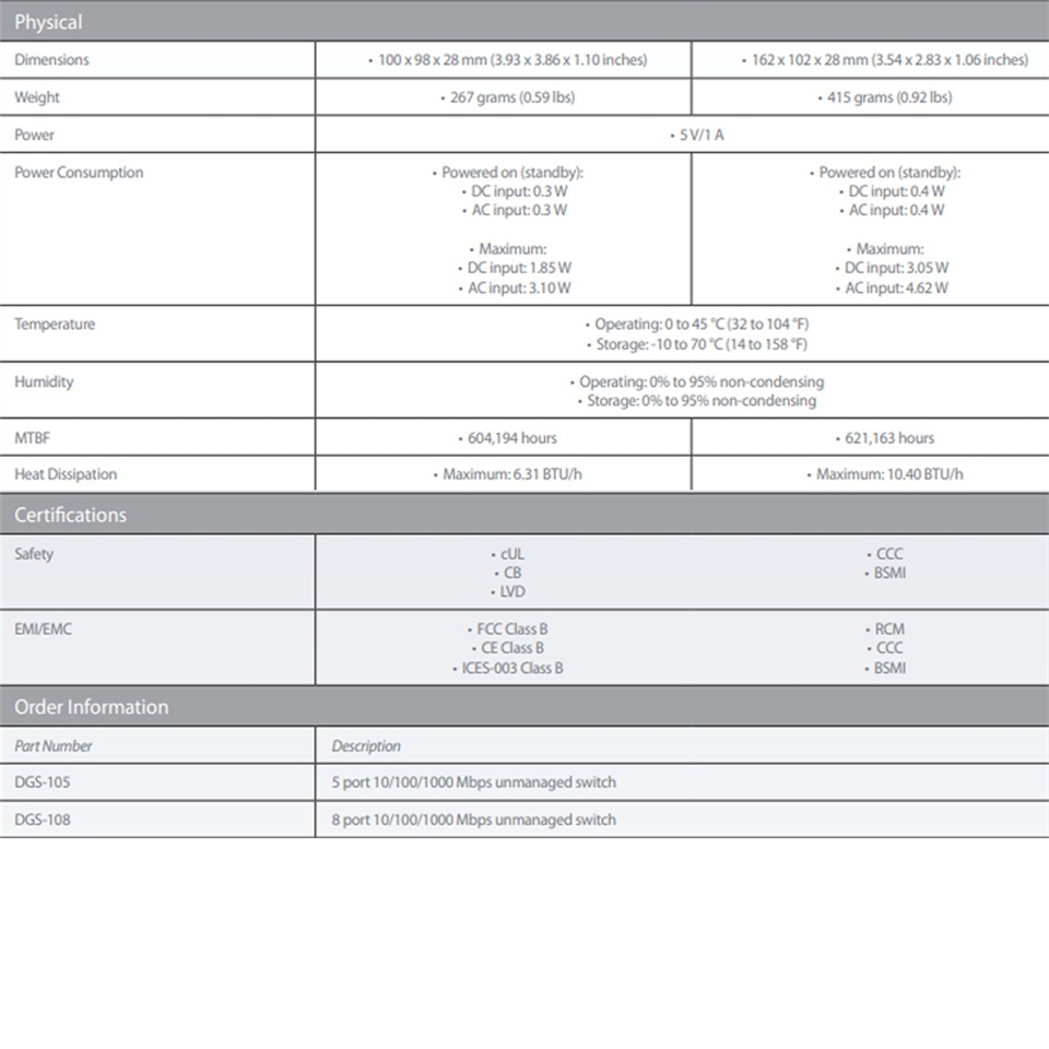 連接埠數量/介面: 8埠10/100/1000 BASE-T