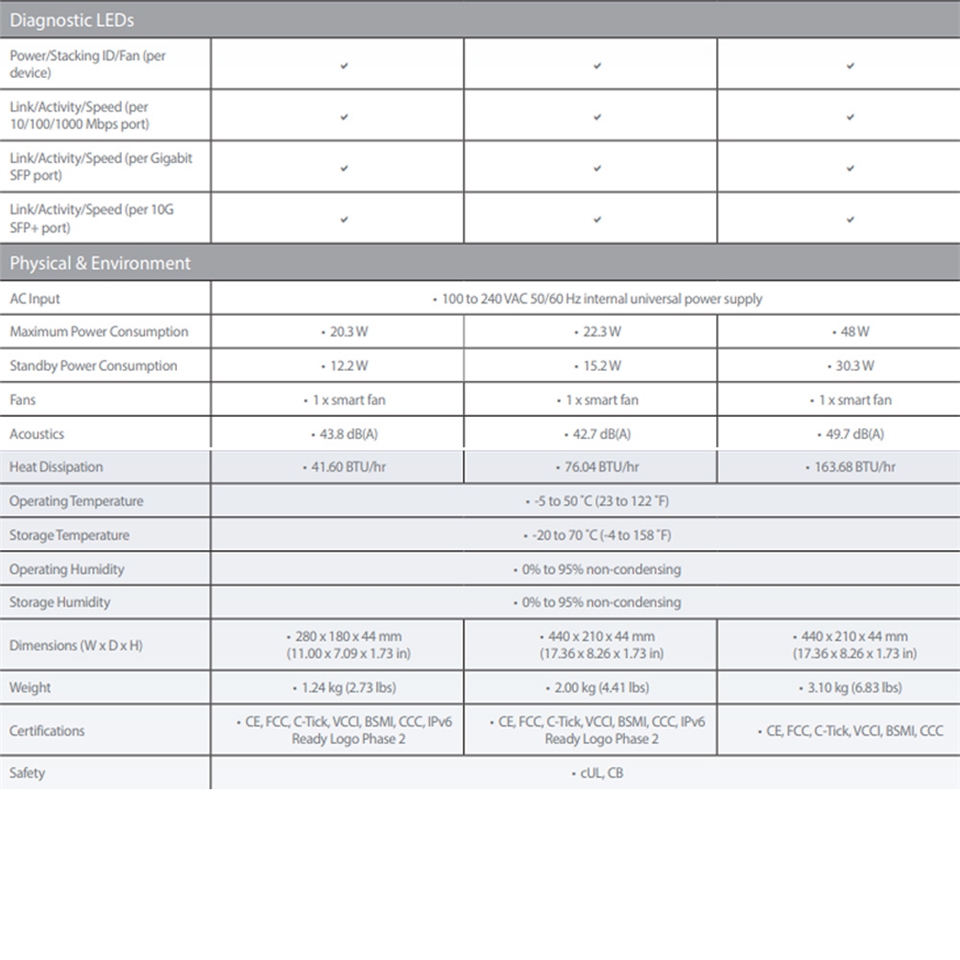 高彈性的使用介面:具備48埠10/100/1000 Mbps,4埠10G SFP+。