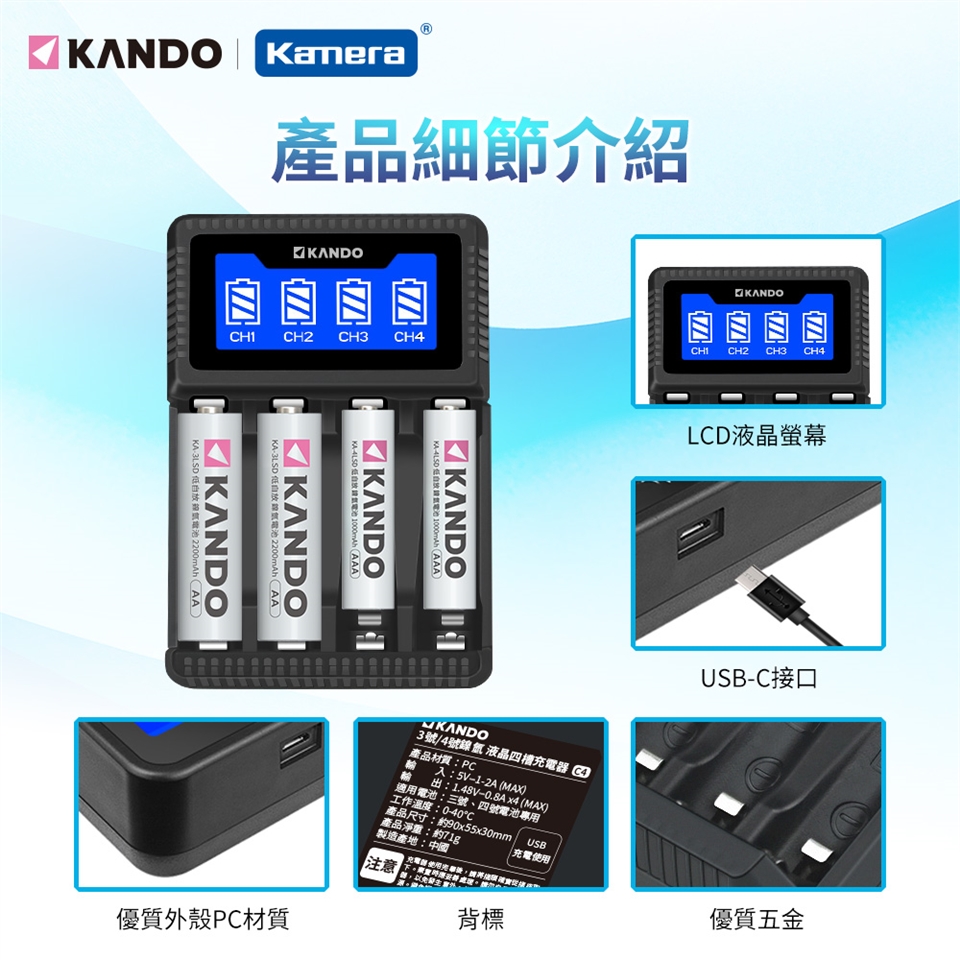 - 隨身鎳氫電池充電器,讓您走到哪充到哪。