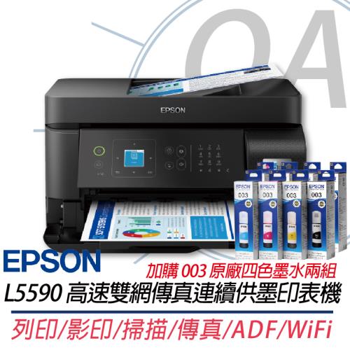 EPSON L5590 高速雙網傳真連續供墨複合機 替代L5290 L5190+003原廠四色墨水2組 上網登錄三年保固