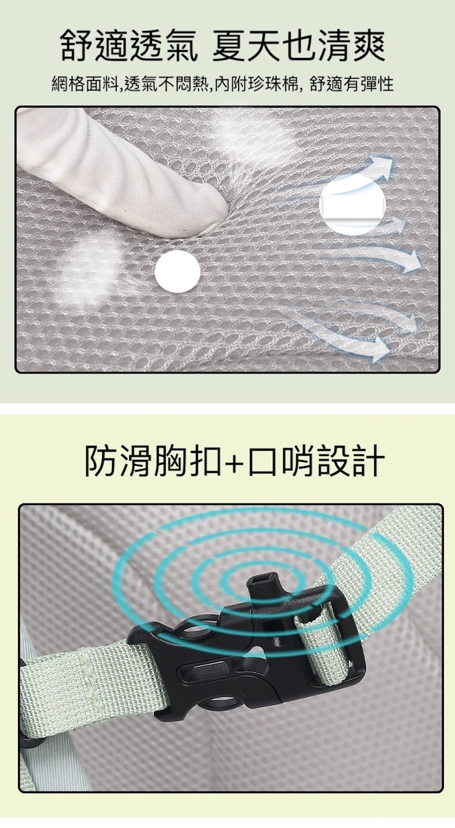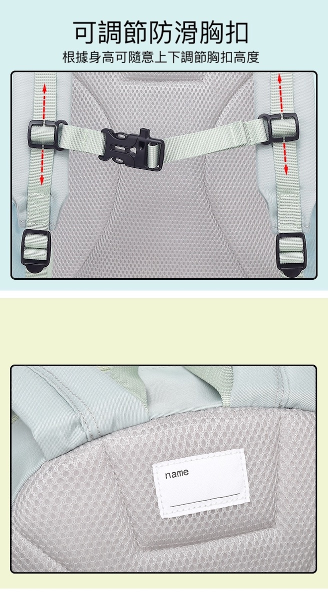 防滑可調節胸扣設計,可根據身高調整胸扣高度