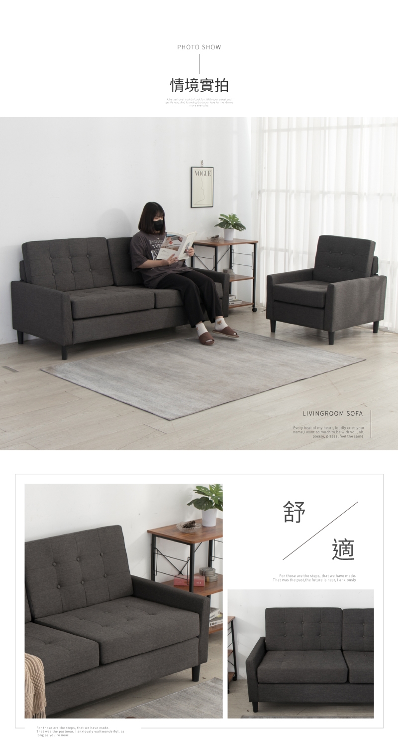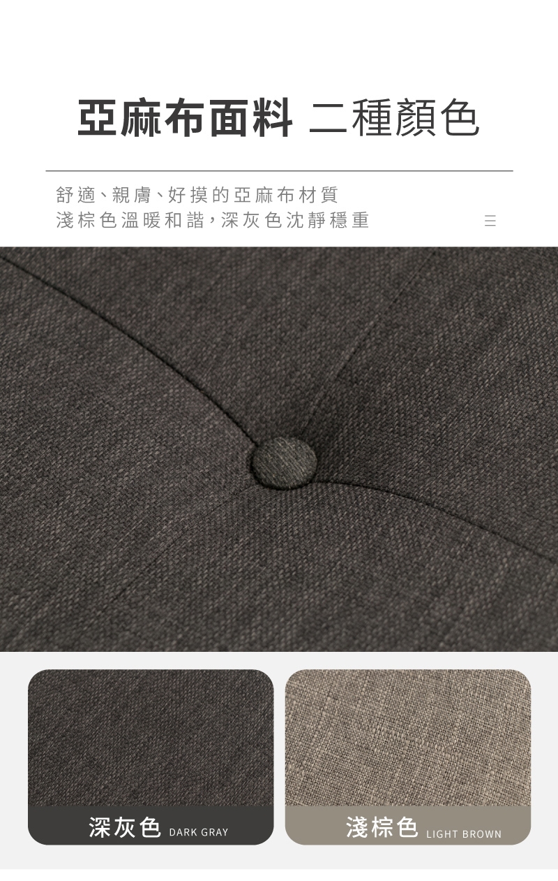 材質:亞麻布+泡棉+木框架+塑膠腳