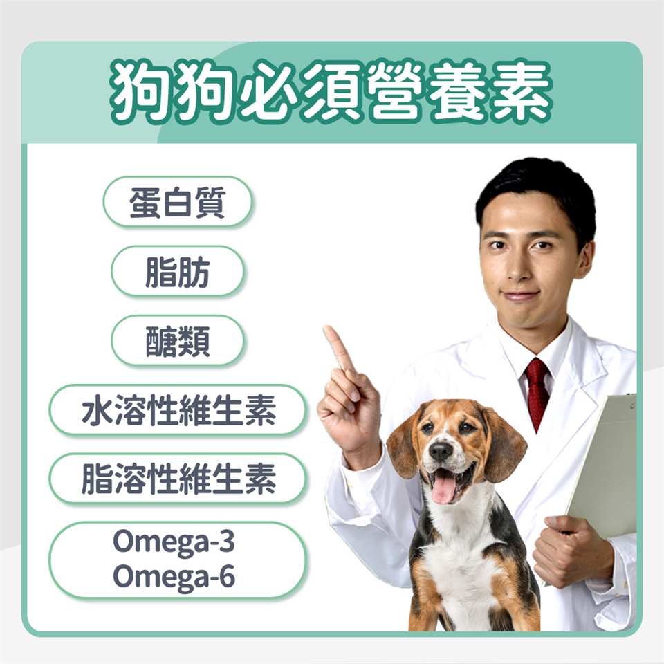 • 維生素和礦物質:飼料需要能提供狗狗所需的各種維生素和礦物質,如維生素A、C、D和鈣、鐵等。
