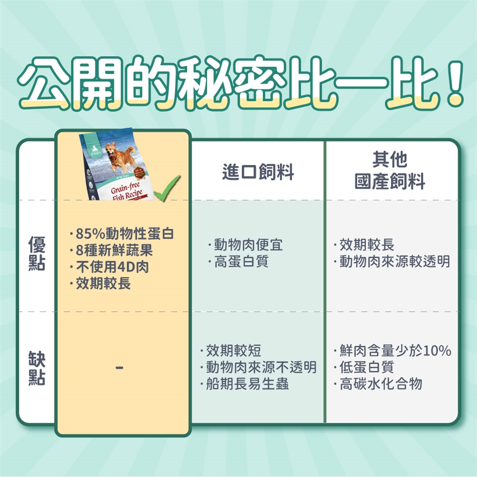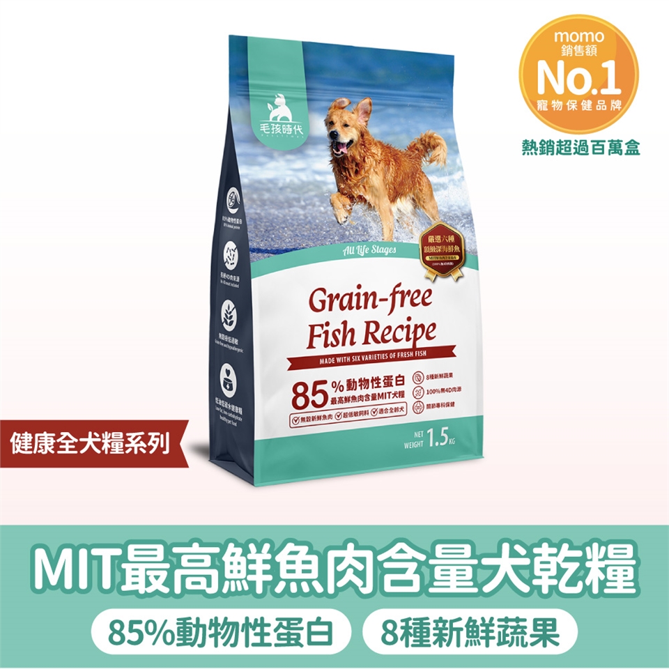 5、為什麼狗狗飼料推薦毛孩時代的85%鮮魚肉無穀全犬糧?