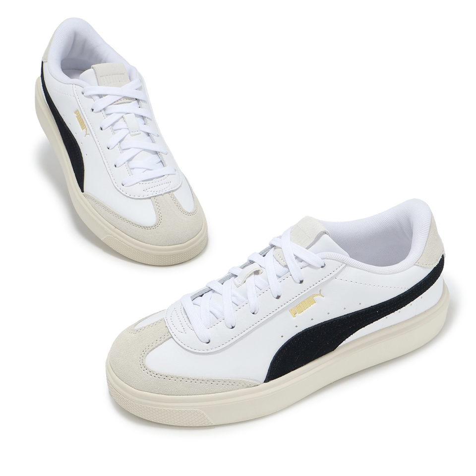 * 白色調鞋面搭配T型鞋頭設計,搭配側邊燙金跳豹小標,增添品牌辨識度與視覺豐富性。