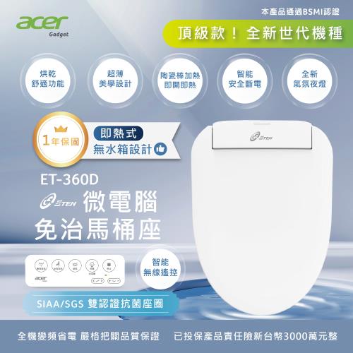 【Acer Gadget 】微電腦變頻即熱式 遙控版免治馬桶座 ET-360D(含基本安裝)