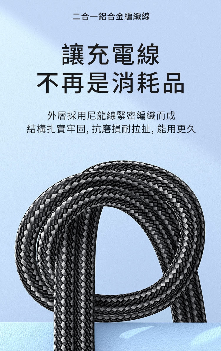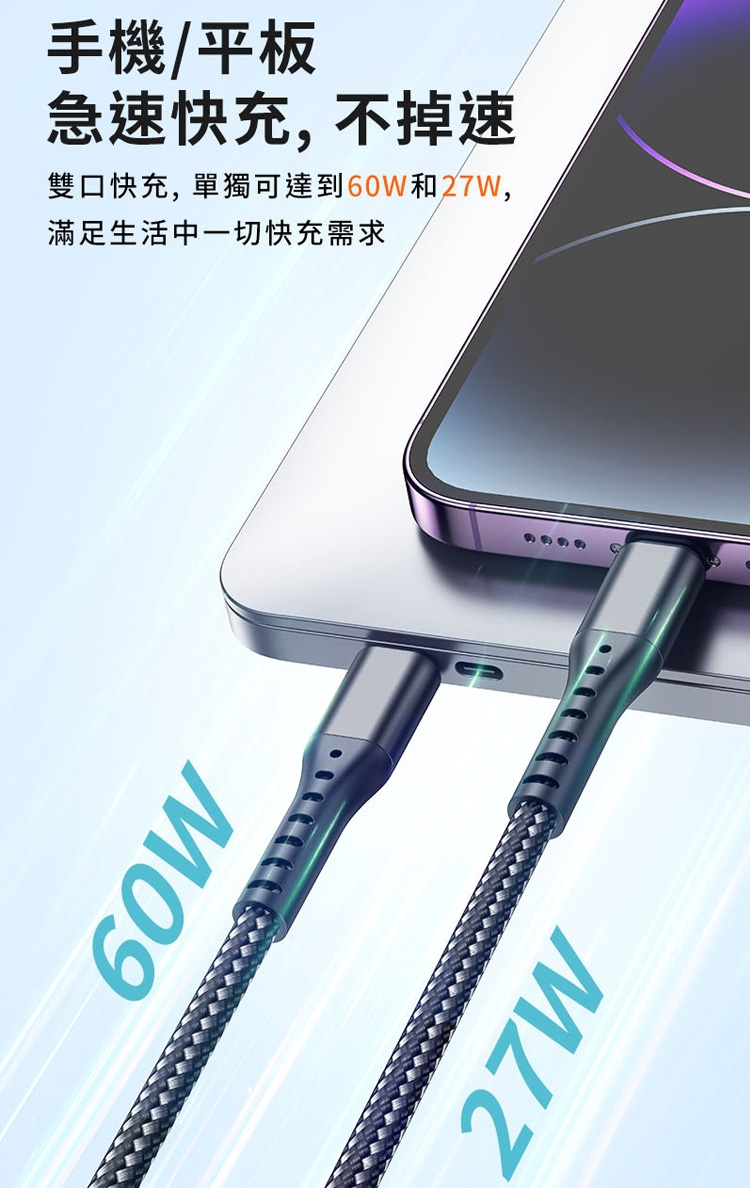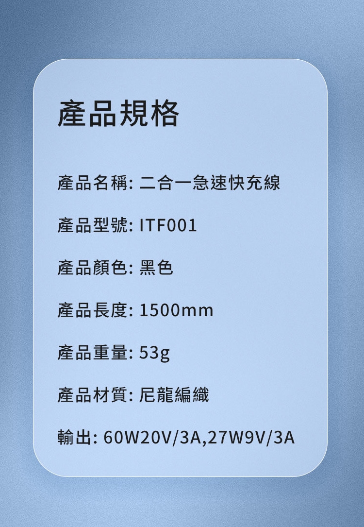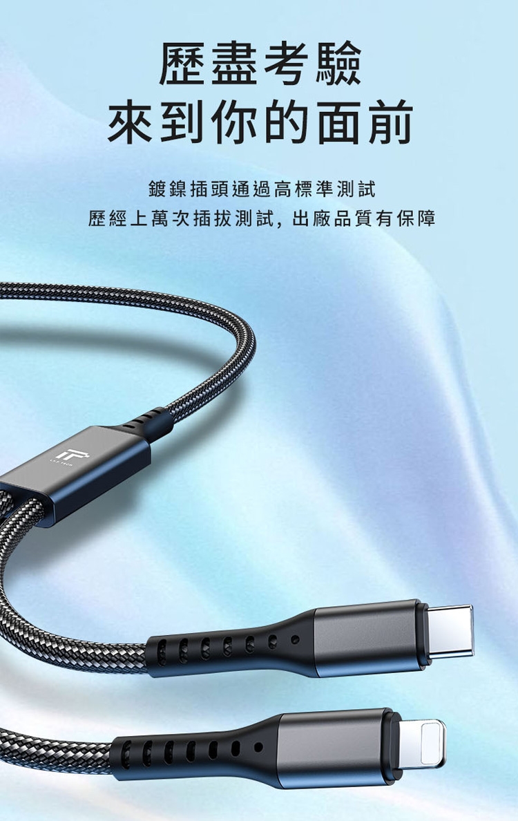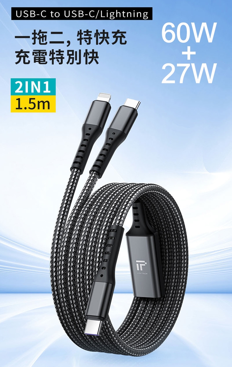 ITF Type-C to Type-C/Lightning 二合一60W+27W急速快充線 ITF001(150cm)