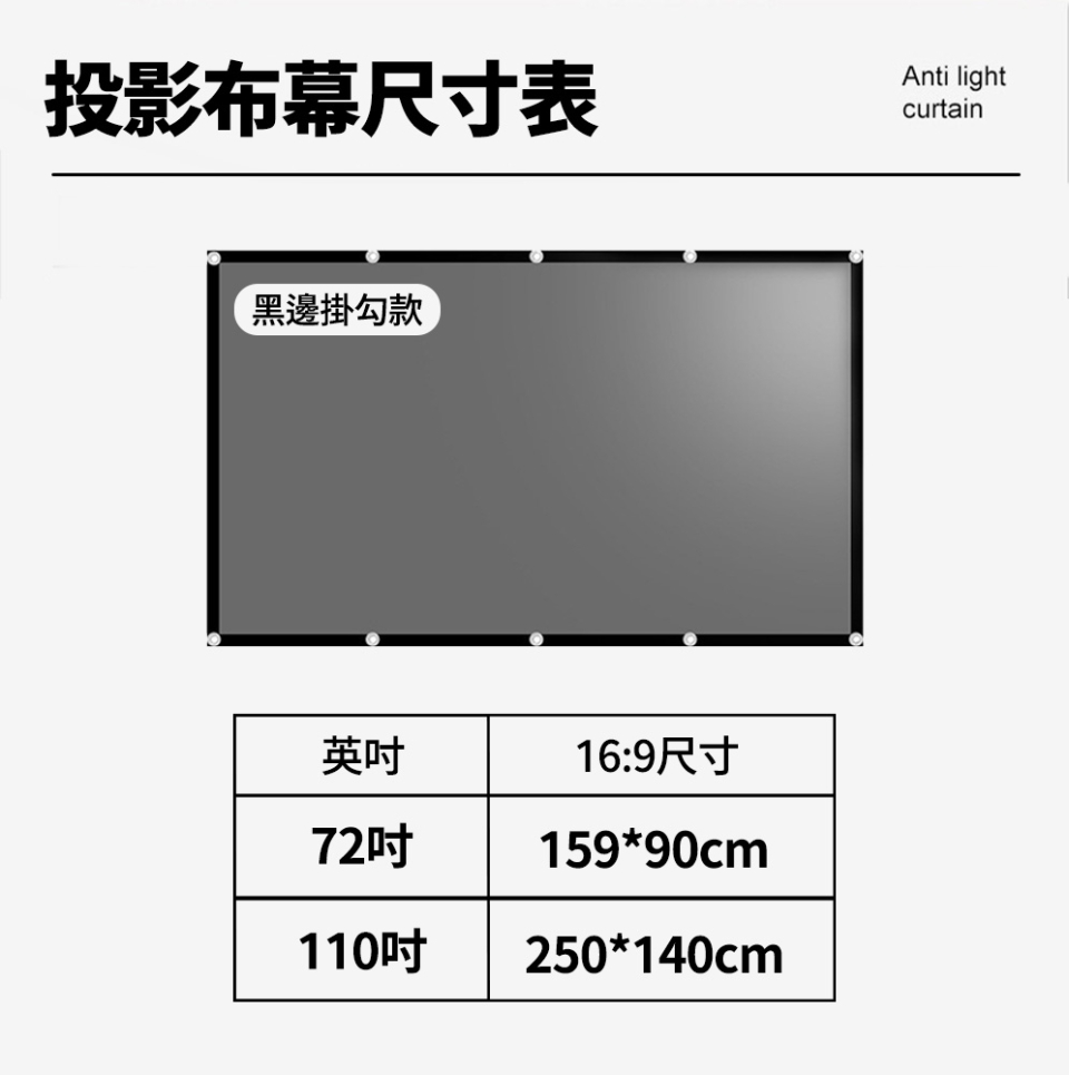 【商品名稱】Yaber 投影布幕 黑邊掛勾款 110吋 (16:9)