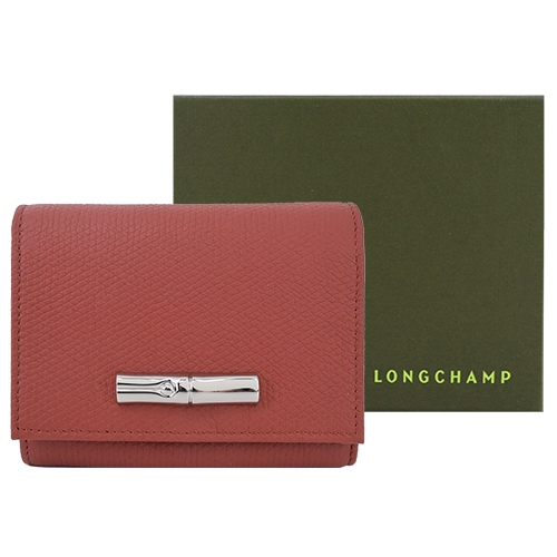 LONGCHAMP LE ROSEAU系列竹節牛皮簡約三折壓釦短夾(多色選)