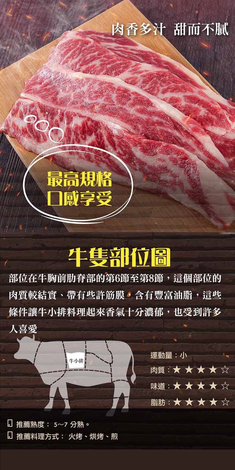 四、無任何添加及醃漬嫩化,最佳賞味熟度為5-7分熟,熟度愈高肉質愈有嚼勁