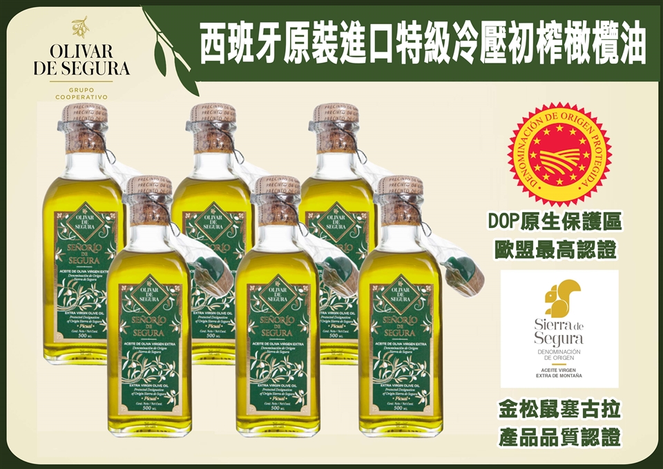 西班牙塞古拉特級初榨橄欖油精裝版(500ml/瓶)*6 (開放一瓶體驗)