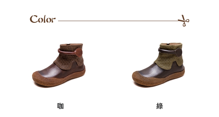 【VECCHIO】全真皮撞色編織厚底短靴/全真皮頭層牛皮復古撞色編織拼接個性厚底短靴 女鞋 咖