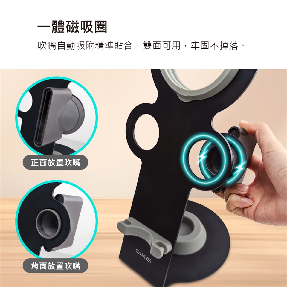 ●大底盤設計:穩固放置,底板上設有可收納造型吹嘴的矽膠墊