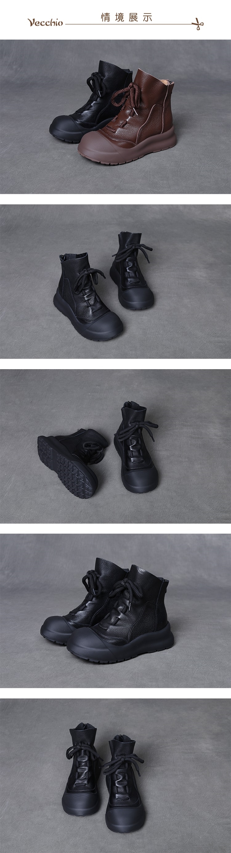 【VECCHIO】全真皮抽繩綁帶厚底短靴/全真皮頭層牛皮抽繩綁帶造型厚底短靴 女鞋 黑