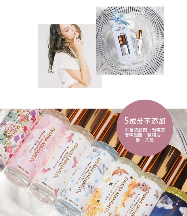香精油--可直接塗抹於乾燥的雙手和腳趾、指(趾)緣,輕柔按摩至吸收。也可用於外出、旅行時的頭髮造型保養或作為精油香水。