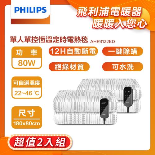 【2入組】Philips飛利浦 單人電熱毯 1800x800 AHR3122ED*2
