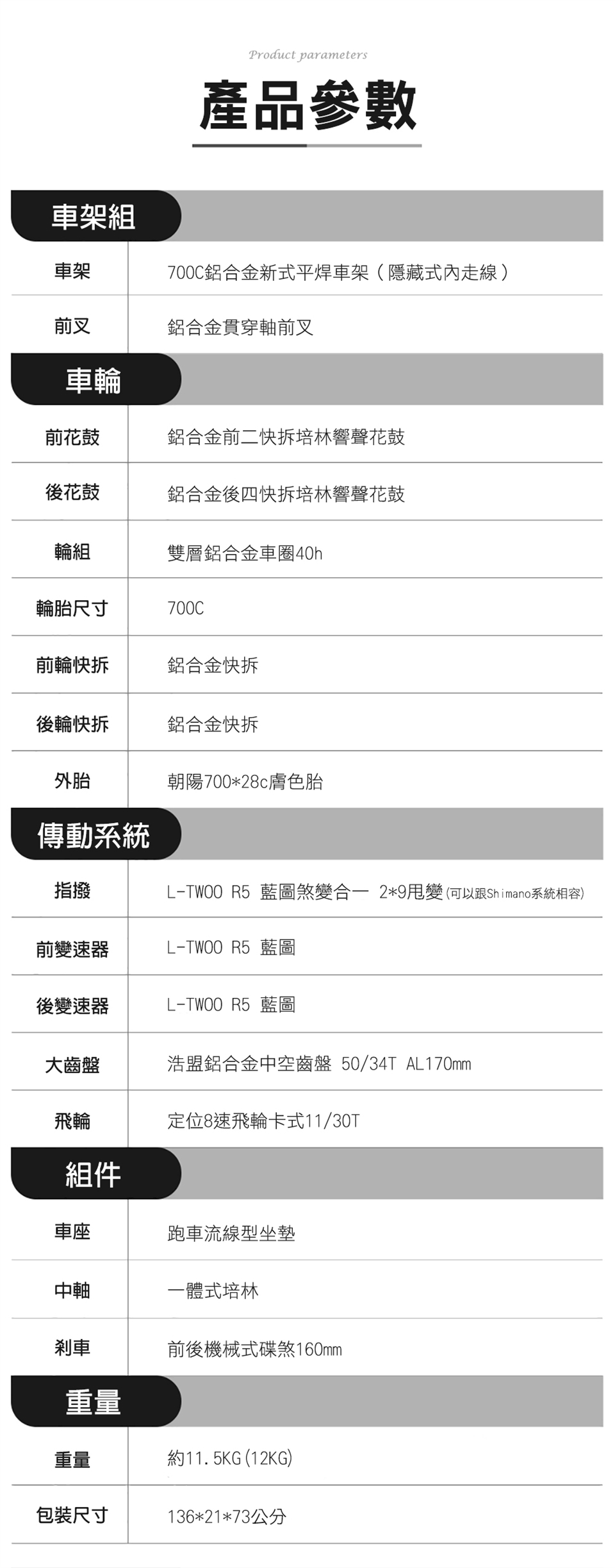 車架:700C鋁合金新式平焊車架(隱藏式內走線)