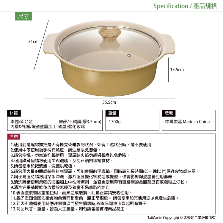 11.鍋子表面會因沾染食物色素而稍變色,屬正常現象。