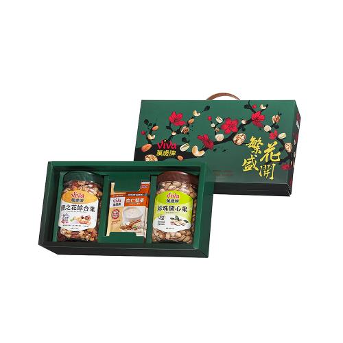 【萬歲牌】繁花盛開綜合堅果禮盒(原味珍珠開心果+鹽之花綜合果加贈什穀杏仁堅果飲)