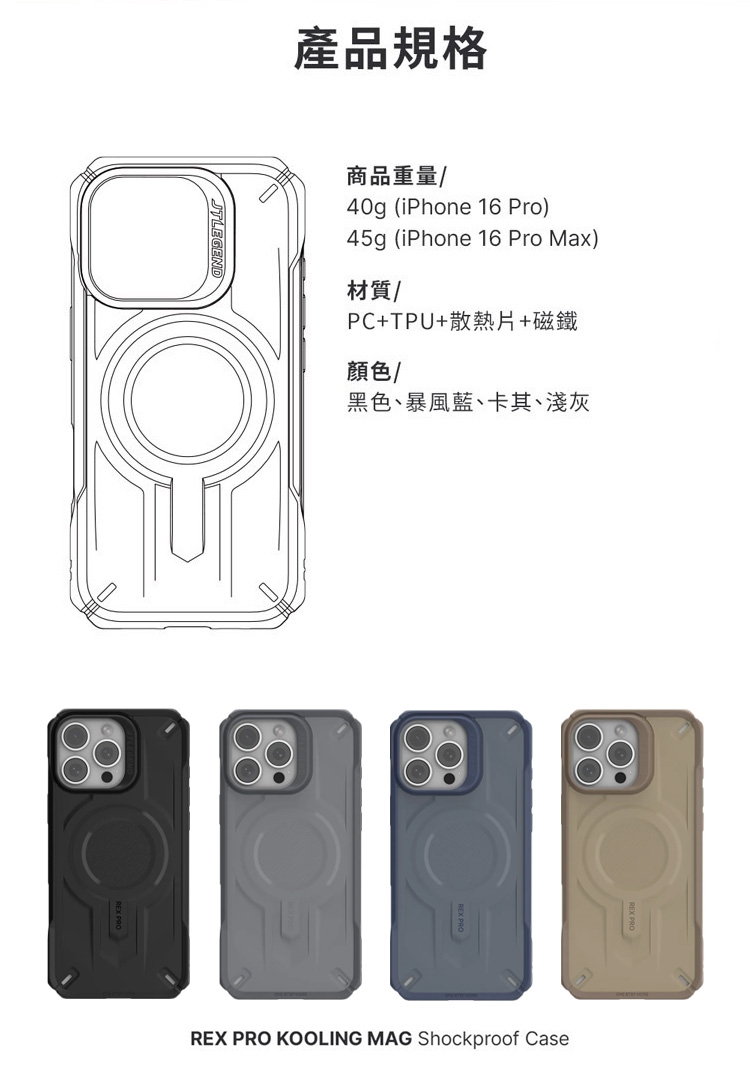 JTLEGEND REX Pro Kooling Mag 超軍規 for iPhone16 Pro (石墨烯散熱+磁吸)防摔散熱殼
