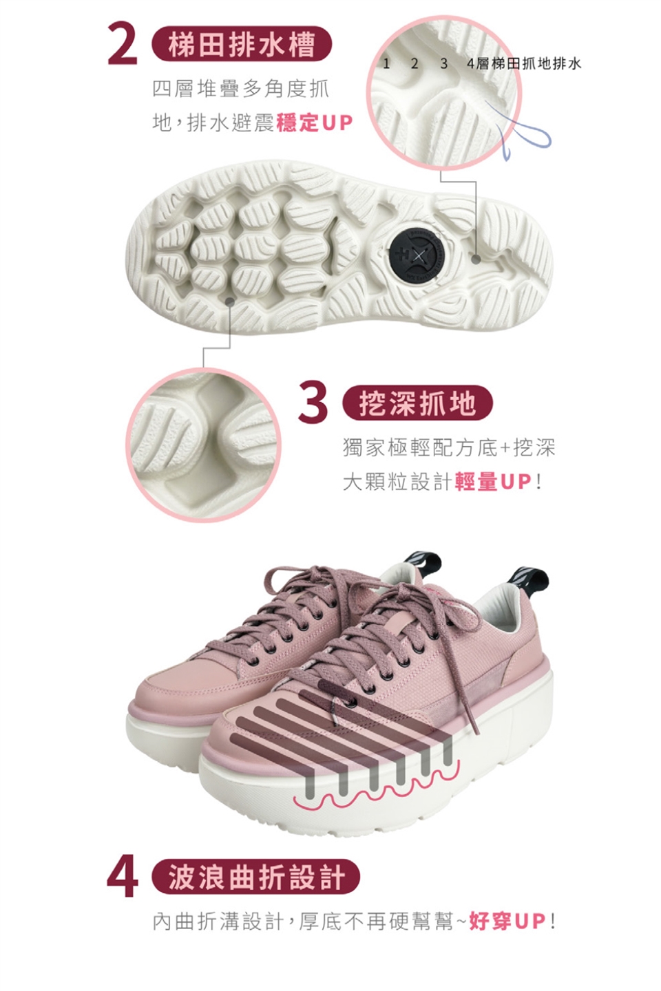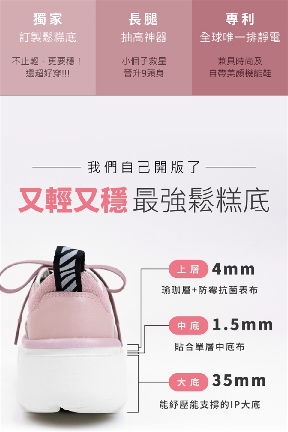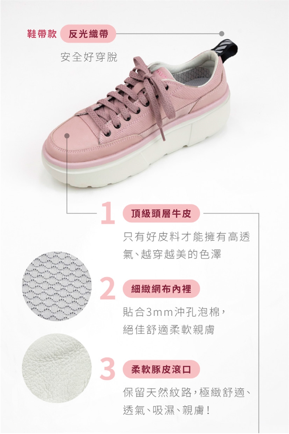 商品名稱:綁帶牛皮鞋- 輕穩鬆糕鞋(女款)UEX2007CSG粉色-增高5公分X排靜電X耐久走