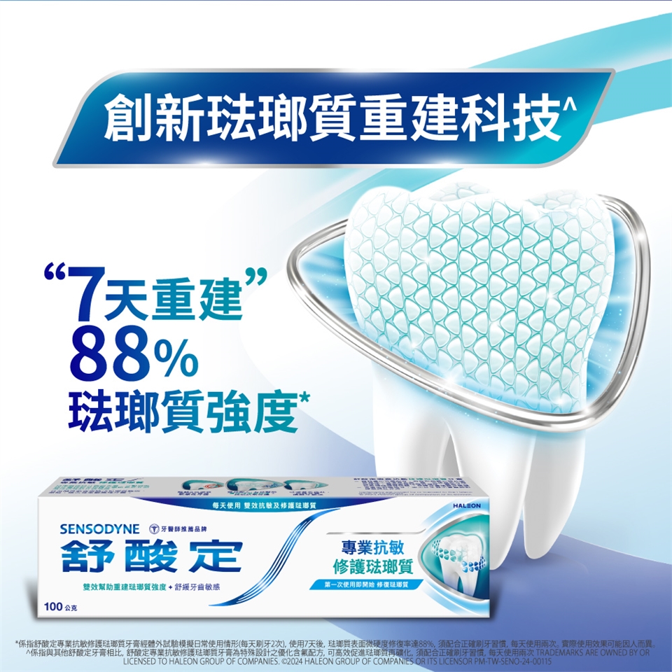 • 使用注意事項:敏感性牙齒可能代表有潛在的牙齒問題,需及時照護,若敏感問題持續或惡化,請諮詢牙醫師。若產生刺激反應,請停止使用產品。若口腔或面部有腫脹現象,請停止使用產品,並立即諮詢您的牙醫或醫生。不適用於12歲以下兒童,或請諮詢牙醫或醫師。請儲存於兒童無法取得之處。產品如未完整密封請勿使用。使用後請關緊管蓋保持產品乾燥。