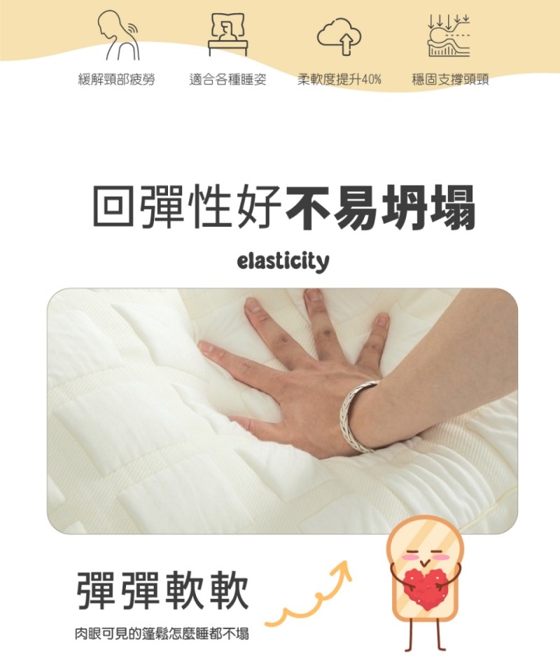 輕拍保持彈性和蓬鬆度,可去除水氣並達到消毒效果,延長使用壽命