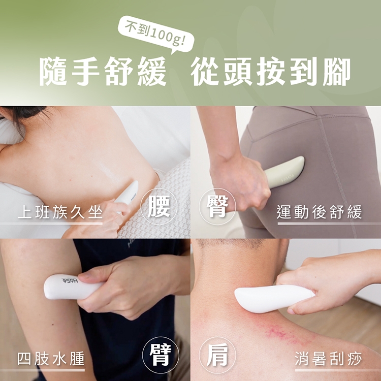 2.搭配按摩刀作筋膜/刮痧按摩使用(每個部位建議按摩5~10分鐘,讓產品順著肌肉走向做按摩)