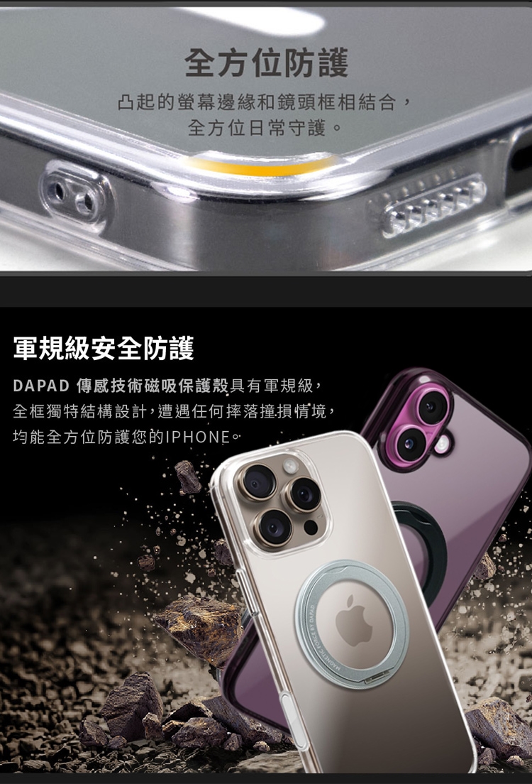 DAPAD for iPhone16 Plus 6.7 專利傳感技術磁吸360度支架保護殼
