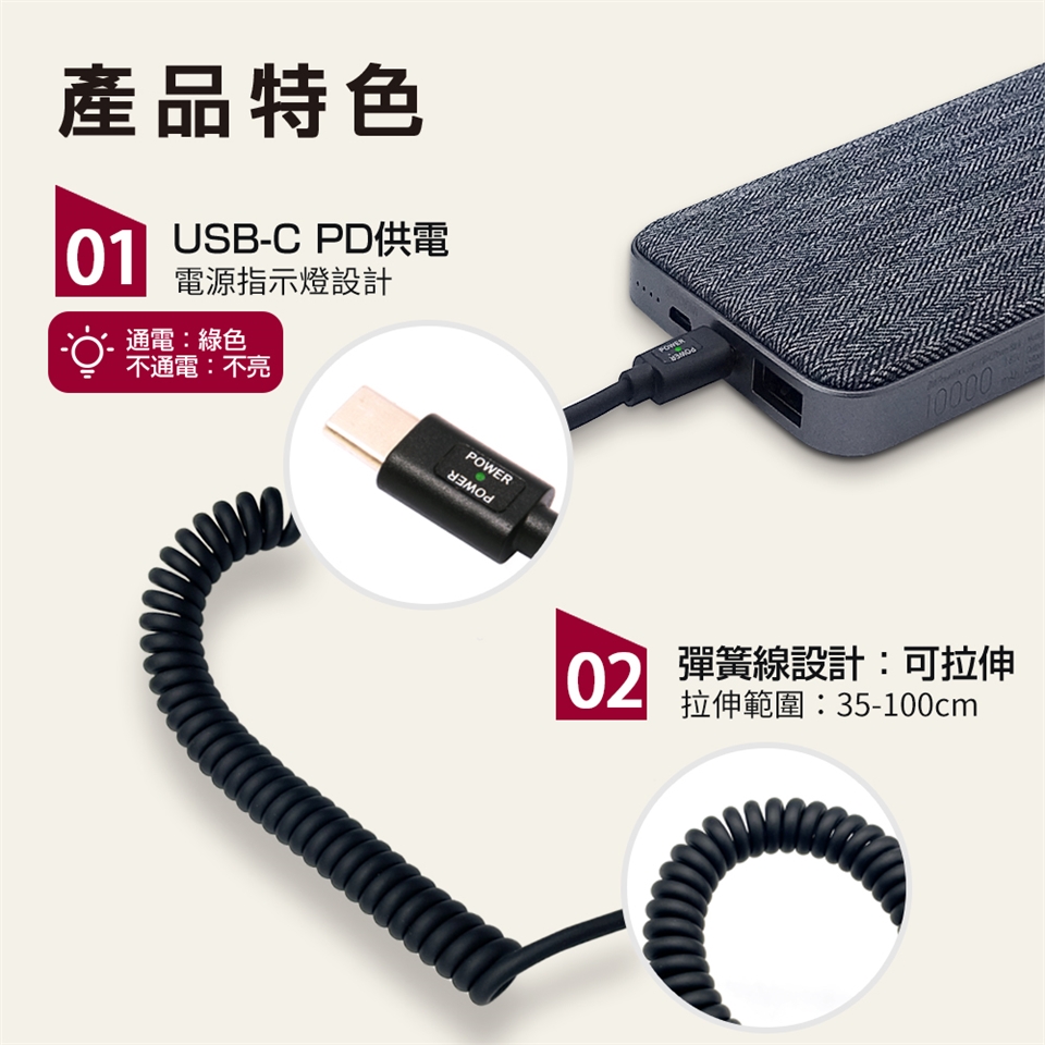 - USB-C PD供電,電源指示燈設計,通電:綠色,不通電:不亮。